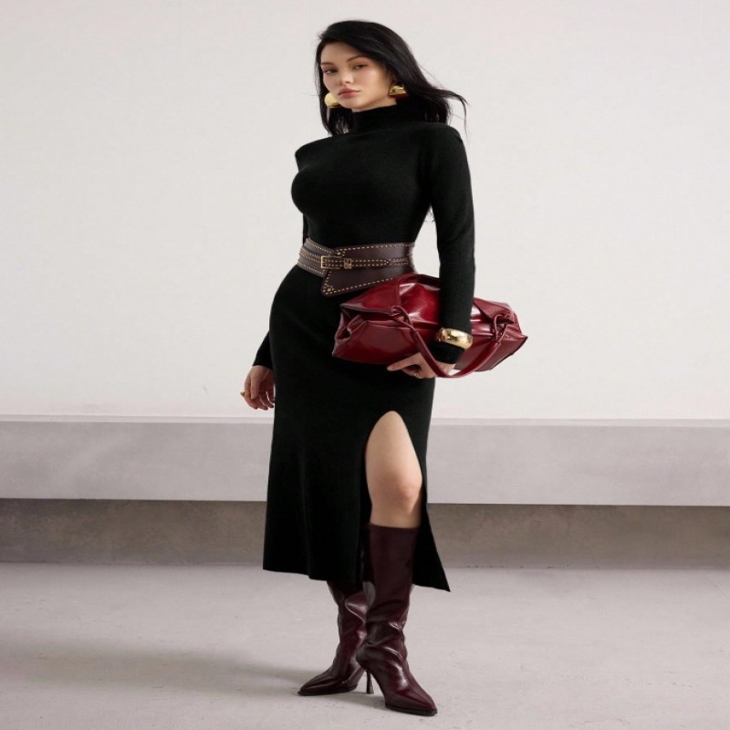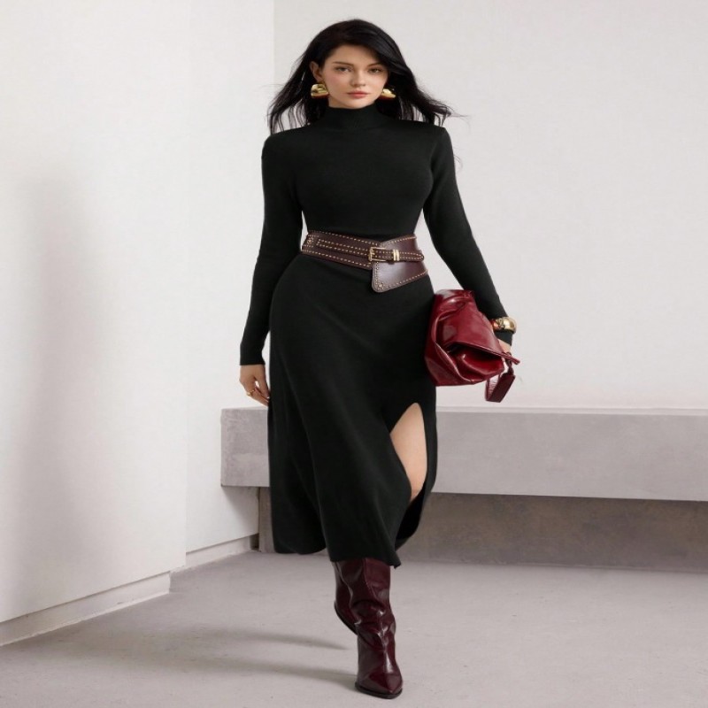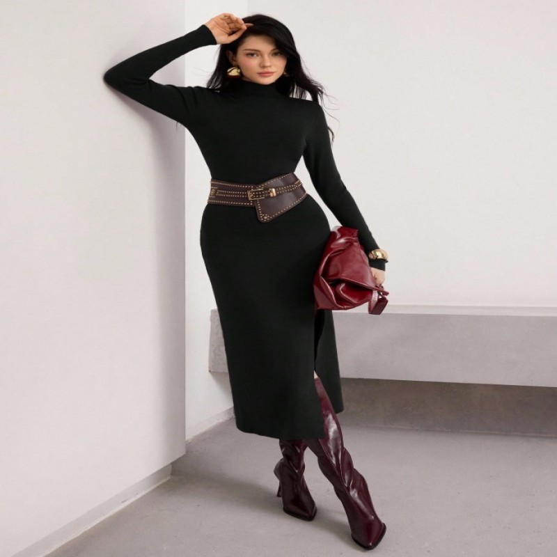 Heiryn Vestido de suéter de punto casual para mujer, otoño/invierno