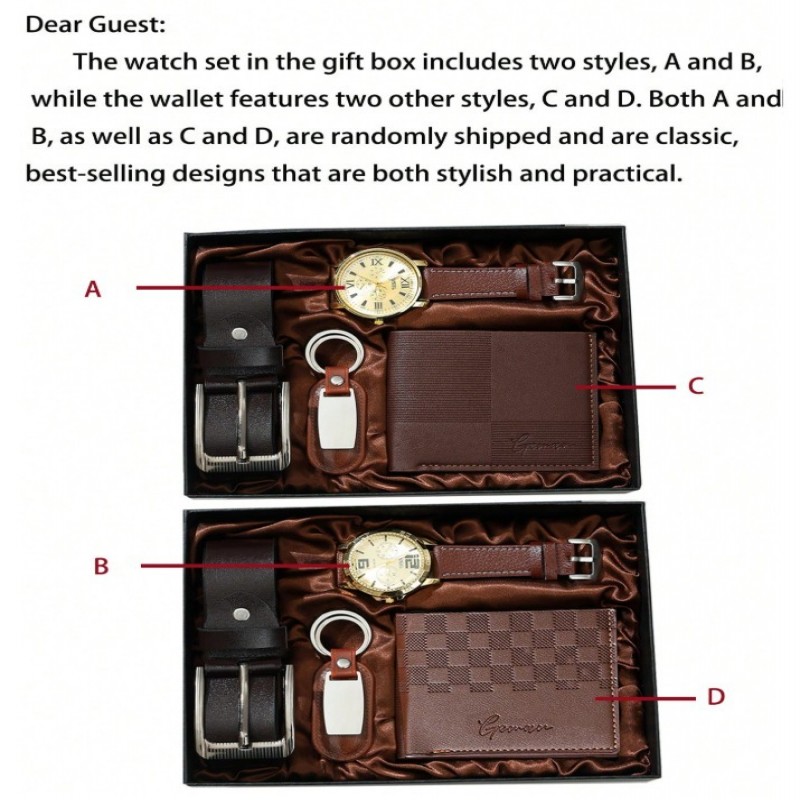 Set de regalo de reloj para hombres, ideal para el Día del Padre, regalos para papá, incluye cinturón de cuero casual, billetera, gafas de sol, excelente para novio, esposo, aniversario, Día del Maestro, regalos de graduación