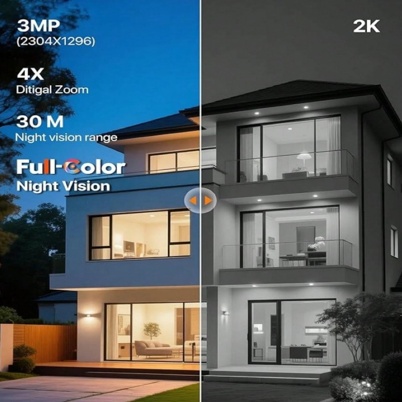 Tenda RP3 Pro, Cámara para Interior, 3MP Ultra Alta Definición, Vision de 360 ° , Control Remoto de App, Llamada con una Sola Pulsación, Detección de Movimiento, Visión Nocturna