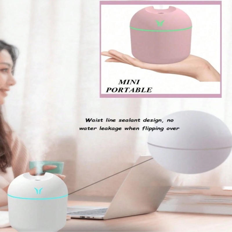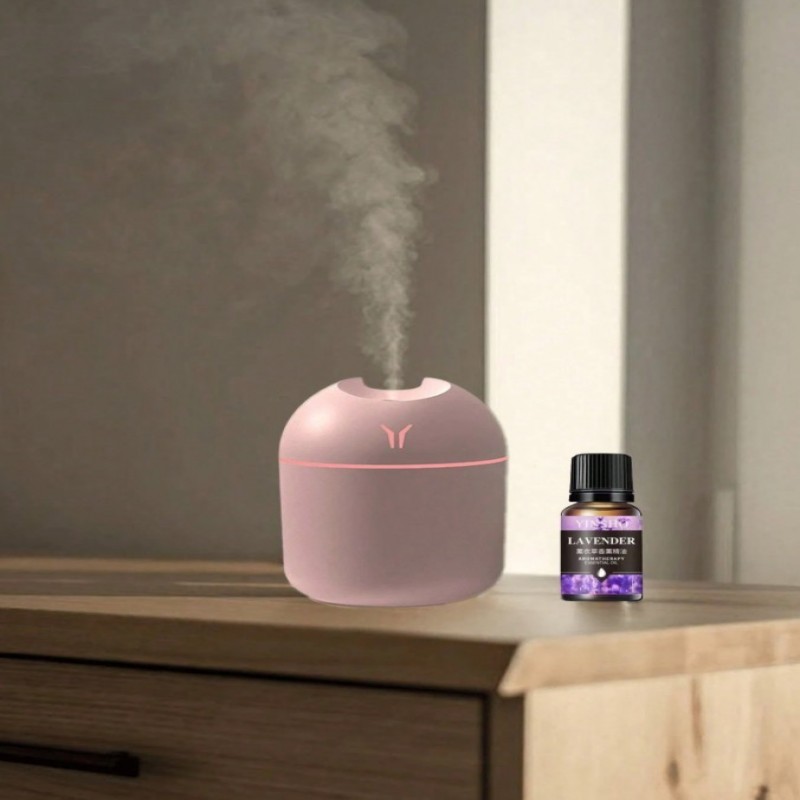1 X Difusor de aceites esenciales portátil mini USB de 250ml con luz nocturna de color, máquina de aromaterapia y humidificador para viajes, oficina, coche, escritorio, dormitorio + 1 X Difusor de aceites esenciales, se puede usar como un regalo decorativ