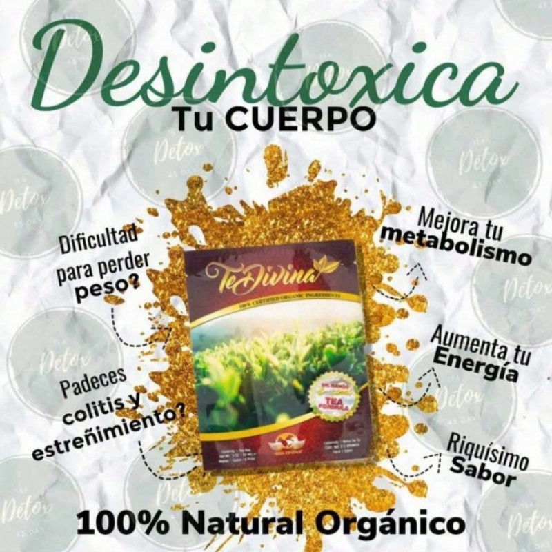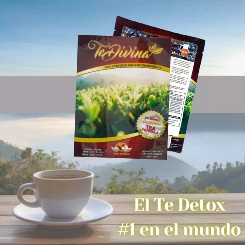 Té Divina Té detox herbal natural 4 sobres para más 2 de regalo, tratamiento completo de 6 semanas, con ingredientes vegetales, ideal para limpieza digestiva, bienestar intestinal y apoyo al control de peso, sobre individual práctico para uso diario o via