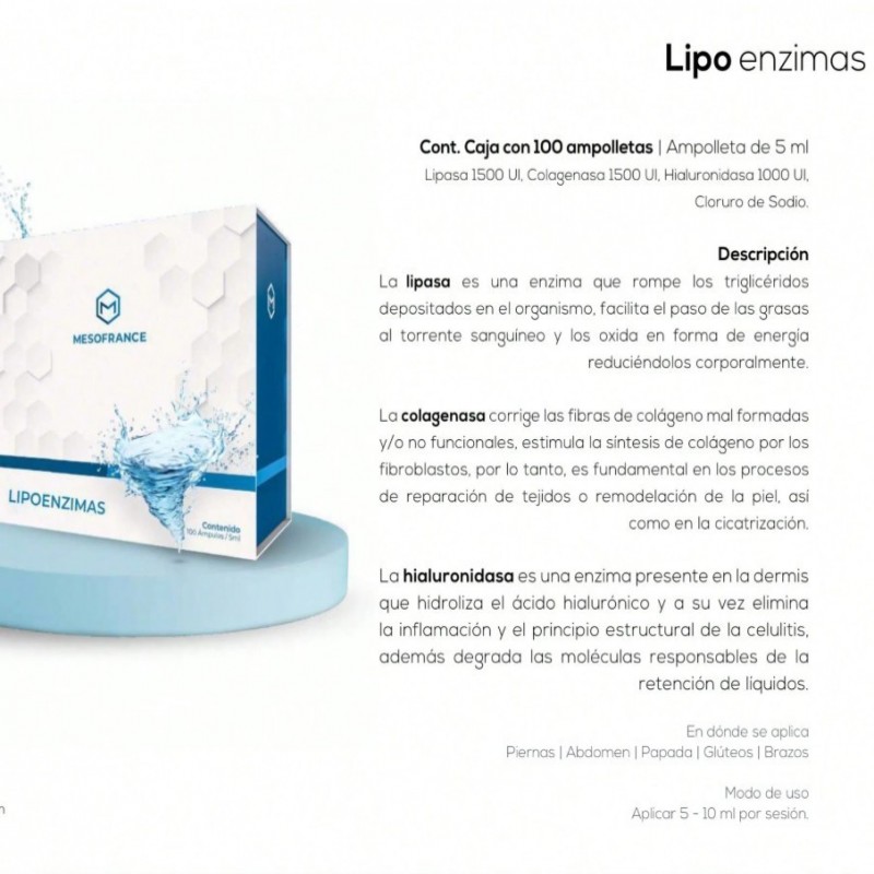 MuscleMeds MESOFRANCE Lipoenzimas Ampolletas 5ml x100 o 10x5ml Tratamiento Corporal Profesional Reductor Estética Spa Médico Salud Facial
