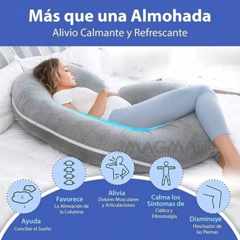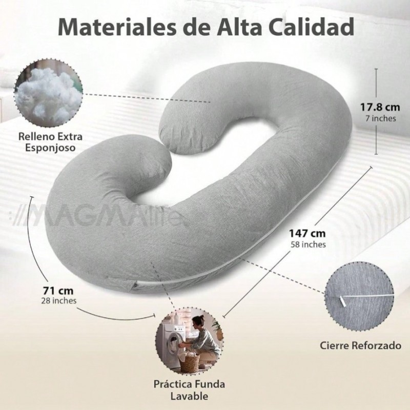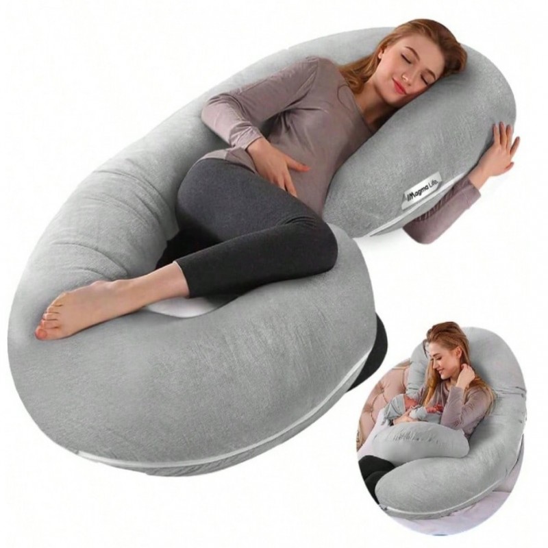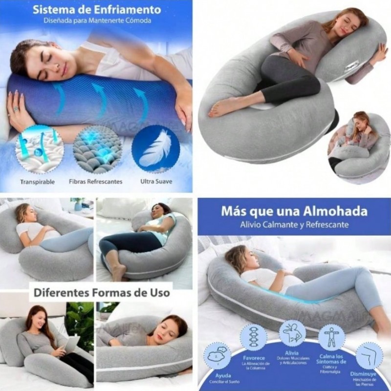 Almohada para Embarazada Cmoda y Transpirable Tipo C de Cuerpo Completo, Relleno de Algodn, Alivio para Espalda, Piernas y Vientre, Cmodo Descanso para La Maternidad