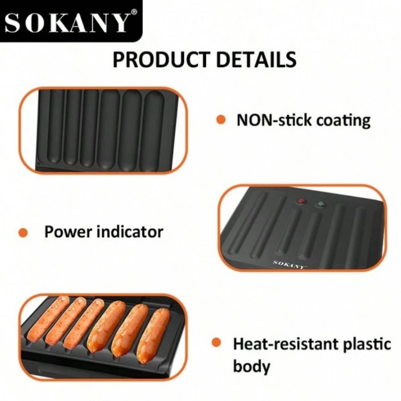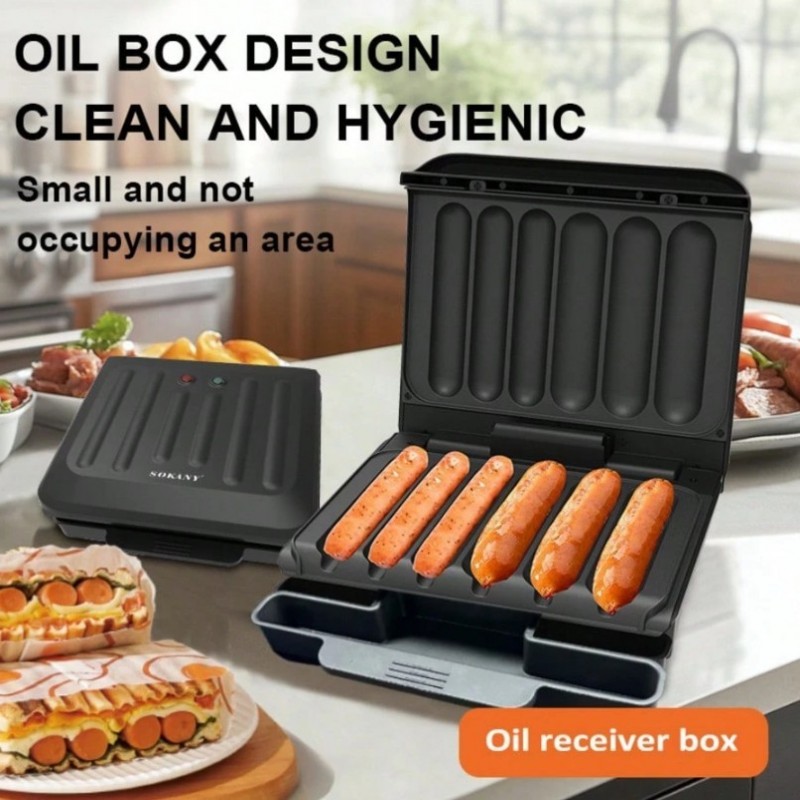 SOKANY Máquina eléctrica para hot dogs y asa para salchichas con bandeja de goteo de aceite y almacenamiento de cables, adecuada para salsas vegetarianas, barbacoas o chocolatinas. Tablero antiadherente y fácil de limpiar