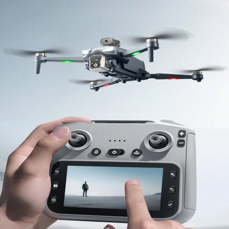 Con una cámara, múltiples modos de control, color gris plateado y soporte para WiFi y banda dual de 2.4GHz; una pantalla de control remoto en tiempo real 5G de 4.5 pulgadas; cámaras duales (para fotos/videos), que admiten disparos y vuelo estacionario en tiempo real; evitación inteligente de obstáculos; motor sin escobillas; despegue/aterrizaje con un solo botón - fácil para principiantes; ideal para entretenimiento en interiores y exteriores, carreras y fiestas; los obsequios incluyen: bolsa de almacenamiento, tarjeta de memoria + lector de tarjetas, hélices de repuesto; un regalo ideal para cumpleaños, Navidad y Halloween; cámara digital.